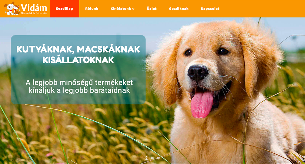 Az állateledelek és felszerelések forgalmazásával foglalkozó Vidám Állateledel bolt egy új weboldal megbízásával fordult hozzánk. A megvalósítás során természetesen a Joomla rendszerre esett a választásunk, amellyel a könnyű kezelhetőség mellett nagyszerű, mobilbarát megjelenést hozhatunk létre. A munka elvégzése során kialakítottunk egy egyedi dizájnt, valamint amegrendelő elképzelései alapján egy felhasználóbarát weboldalt.