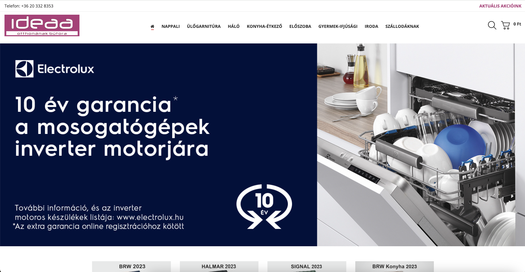A bútorok kereskedelmével foglalkozó Ideaa.hu azzal a megbízással fordult hozzánk, hogy a még Joomla 2.5/Virtuemart 2 rendszerében készült webáruházukat frissítsük és újítsuk fel a legújabb verzióra. A munka során frissítettük a joomla rendszert a legújabb 4-es verzióra, majd a webáruház rendszert és a többi komponenst is. Az oldal egy modern, reszponzív, Virtuemartra optimalizált sablont kapott, majd az adatbázis migrálása után még biztonságilag és keresőoptimalizálás szempontjából is rendbetettük a webáruházat.